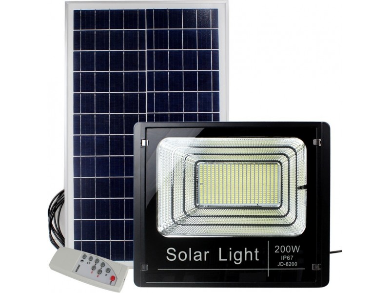 Στεγανός Ηλιακός Προβολέας Ισχύος 200W Με Τηλεχειριστήριο & Αισθητήρα Φωτός Σε Μαύρο Χρώμα